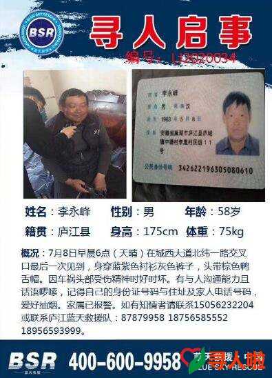 尋人啦(www.56923.cn)懇請各地區(qū)愛心人士轉(zhuǎn)發(fā)此尋人啟事,您的舉手之勞就可能促成一個家庭的團(tuán)圓,并請您看到尋人啟事中的被尋人后對其予以必要的協(xié)助,如果您有線索也可以通過我們公眾號提供給我們,收到線索后平臺會第一時間通知家屬。關(guān)注我們:微信公眾號:尋人啦(xunrenla)。