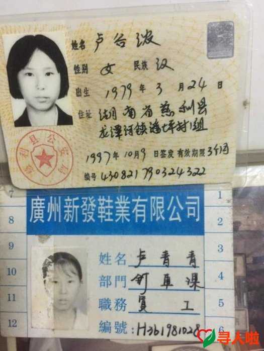 失蹤者是我母親,她是湖南慈利的,我現在身上就只有這點線索,我也不確定是不是對的線索,我只有我母親的身份證還有她年輕時的工作證,但是名字都不一樣,我不確定是不是真的,因為我的母親在我小的時候生下弟弟就離家出走,不清楚是什么時候走的,家里人也就老是給我一些假的線索給我們,導致我現在只有這點線索,我的父親從小也是不管我們,游手好閑,我母親才會離家出走的,這是我同村同學的媽媽跟我說的,所以我想通過這個網站來尋找我的母親,我只想看看我的母親是長什么樣的,哪怕一面也可以,就像知道她人是否還在世上,然后這么多年過去為什么不回來看我們,如果您看到了可以聯系一下
